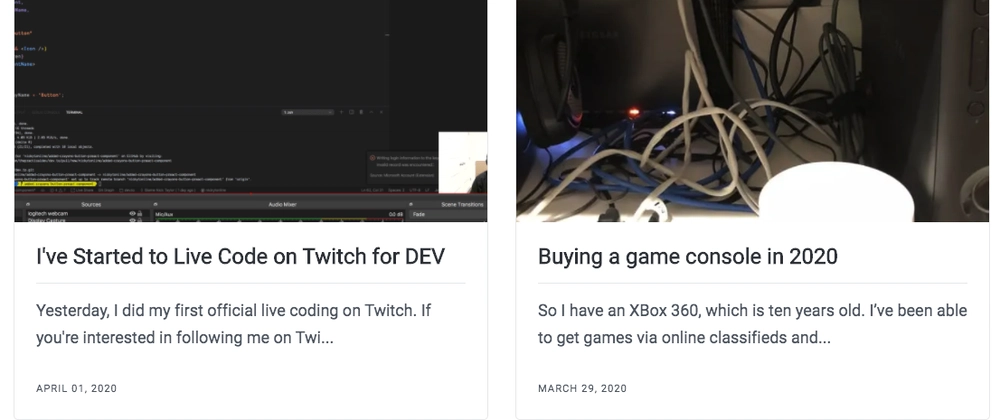 - I was getting tired of publishing in two places. First I would write a blog post on my site using Netlify CMS, wait for things to build and deploy, wait for DEV to pick up the changes of my site’s RSS feed to generate a draft post and then finally format things so that I could leverage DEV’s liquid tags and then post to DEV.